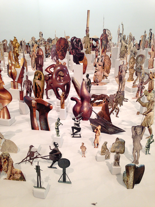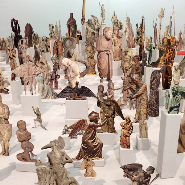 At Casey Kaplan, the title the artist chose, Cut nothing, cut parts, cut the whole, cut the order of time, reminds us once again of how he created the exhibition: a set of components made available for the viewer’s interpretation. The biggest piece visitors finds in the main room of the gallery, named Boneyard, gives them Farmer’s perspective of his entire practice. Farmer takes the ephemerality of time as its theme, crafting small delicate sculptures from the pages of an Art Encyclopedia. Displaying cutouts of sculptures from disparate historical time periods, the artist undoes the fixity of museological display and the agreed sequence of historical events.